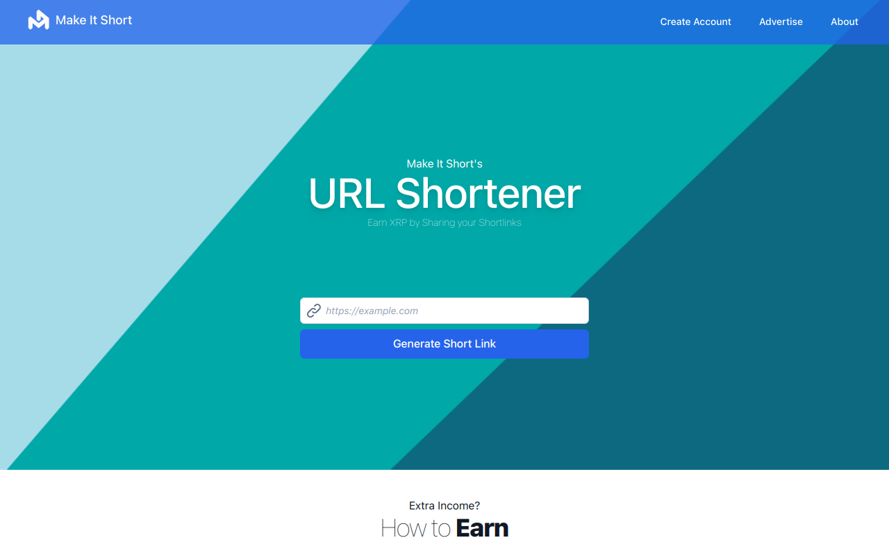 URL Shortener with Advertising & Rewarding System (Ongoing personal project just to Learn more about NextJs and MongoDB), Features Shortening of any kind of links except if the links is malicious or etc, Advertising Feature will able user to advertise their content, Rewarding Feature rewards user depends on clicks of their links, Transaction are made using XRP since it is Fast and the Transaction Fee is very Cheap